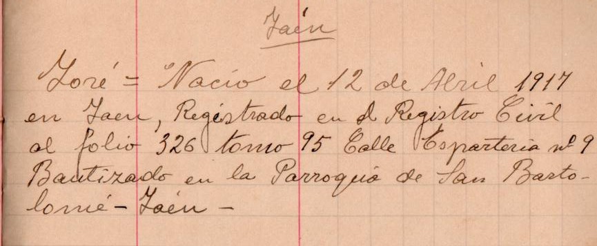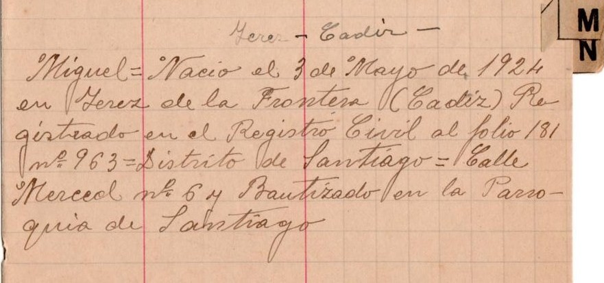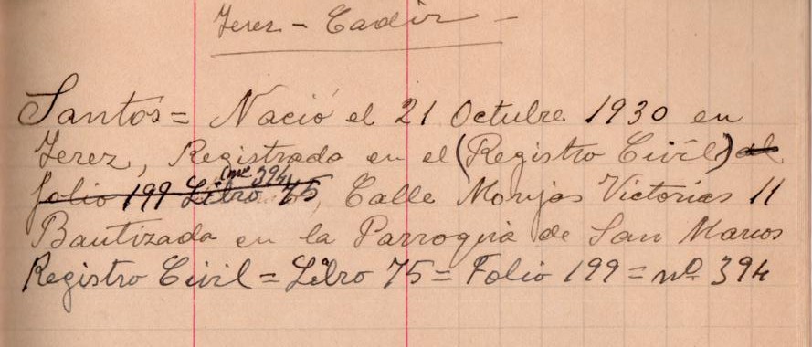 Naissance : 3 mai 1924 à Jerez-de-la-Frontera 11401 Distrito de Santiago Calle Merced, 6