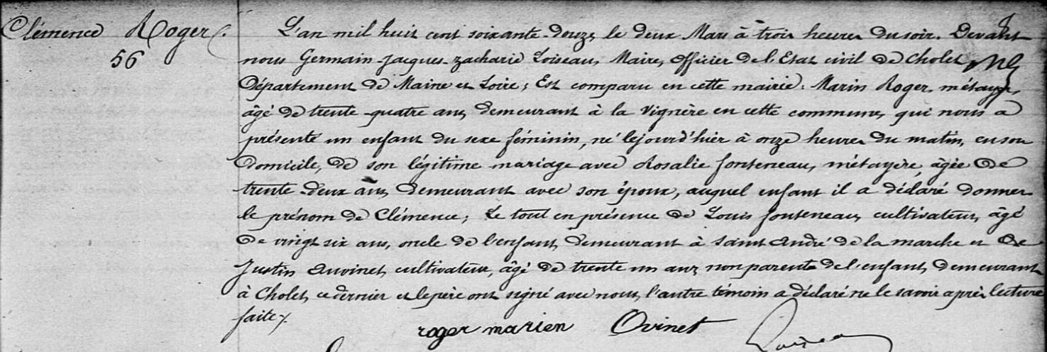 Naissance : 1er mars 1872 à Cholet 49300 La Vignère