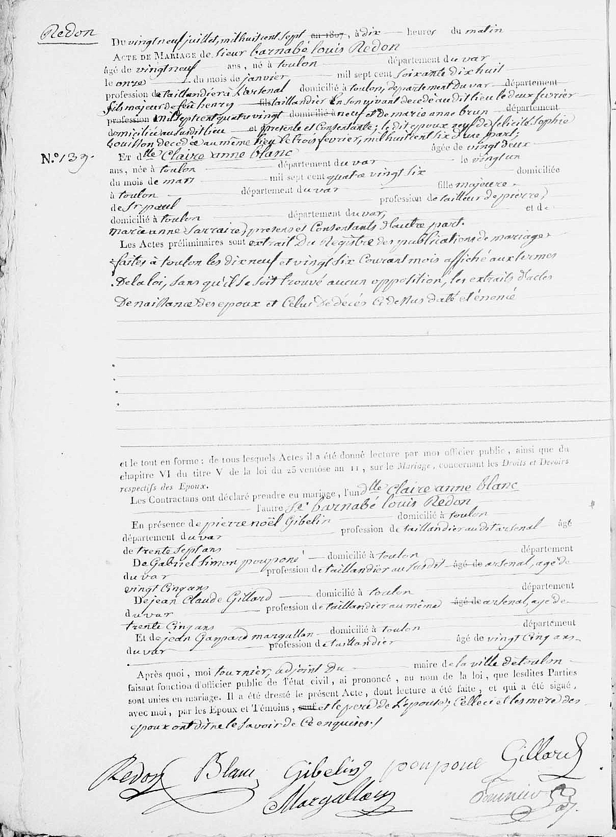 Union : REDON Barnabé Louis ( 1778 - ? )