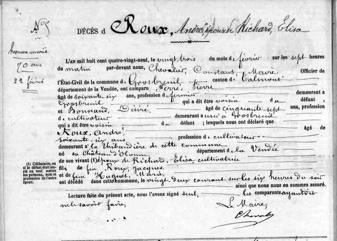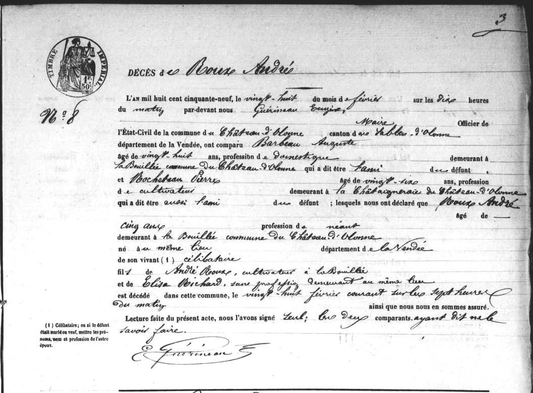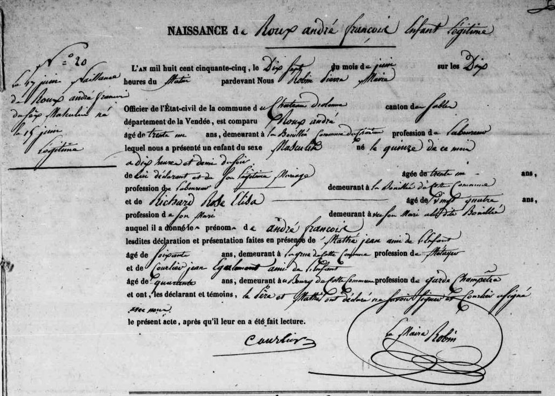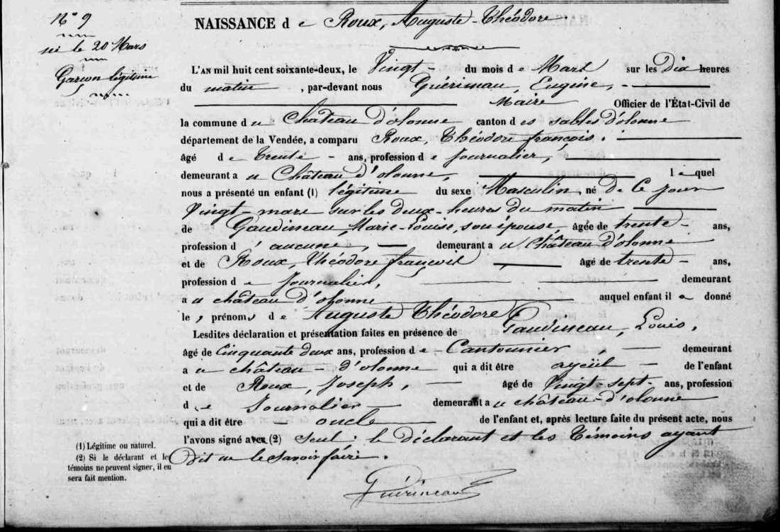 Naissance : 20 mars 1862 à Château-d'Olonne 85180
