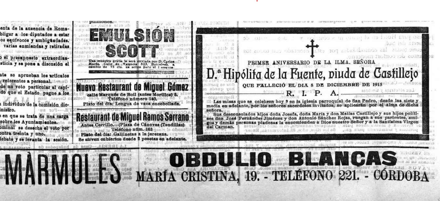Domicile : de 1904 à 1918 à Córdoba 14001 calle Torrijos,2