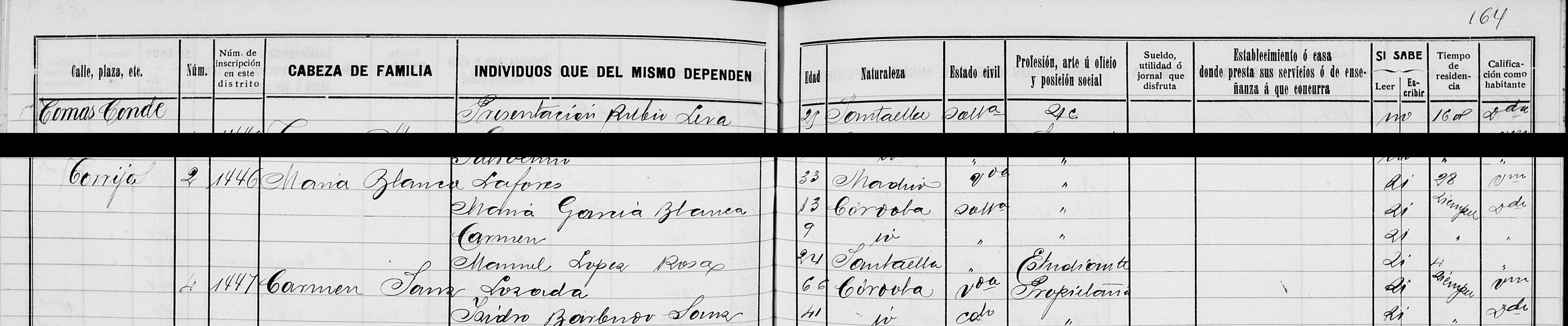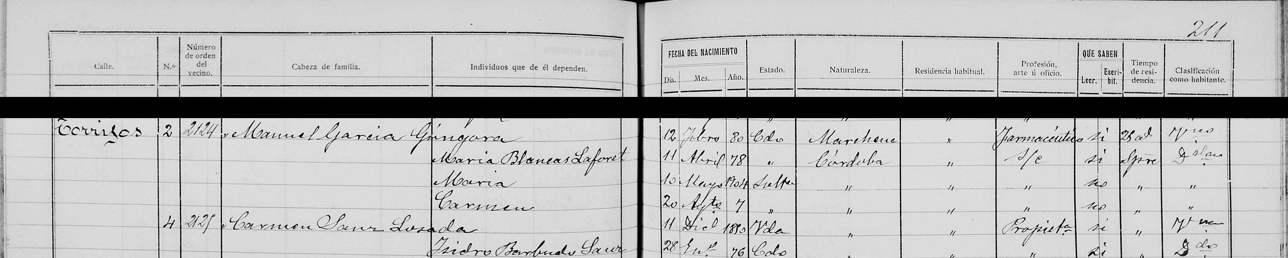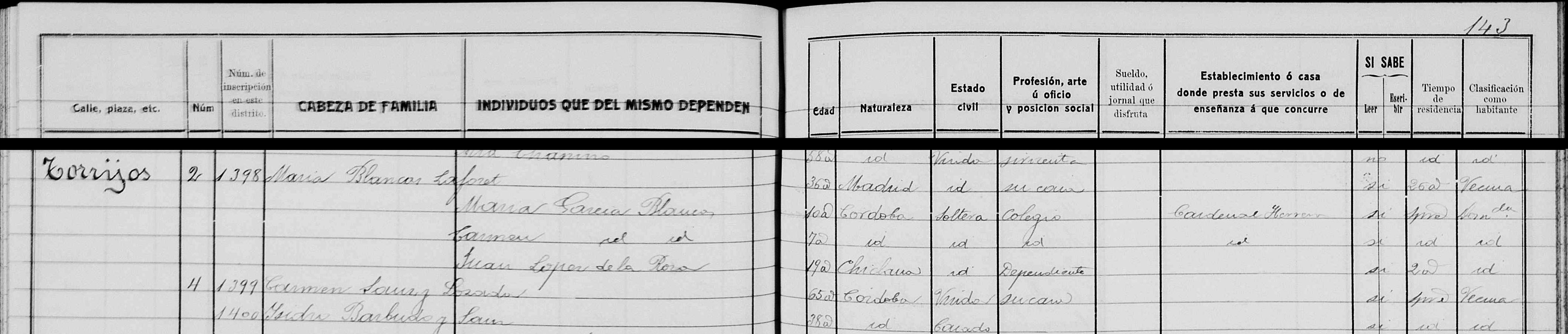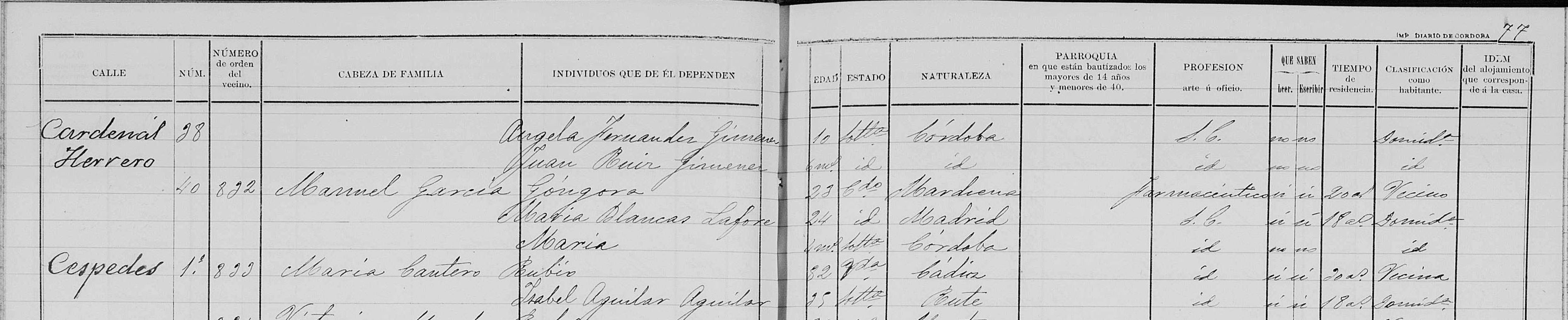 Domicile : de 1900 à 1904 à Córdoba 14001 calle Duque de Hornachuelos,1