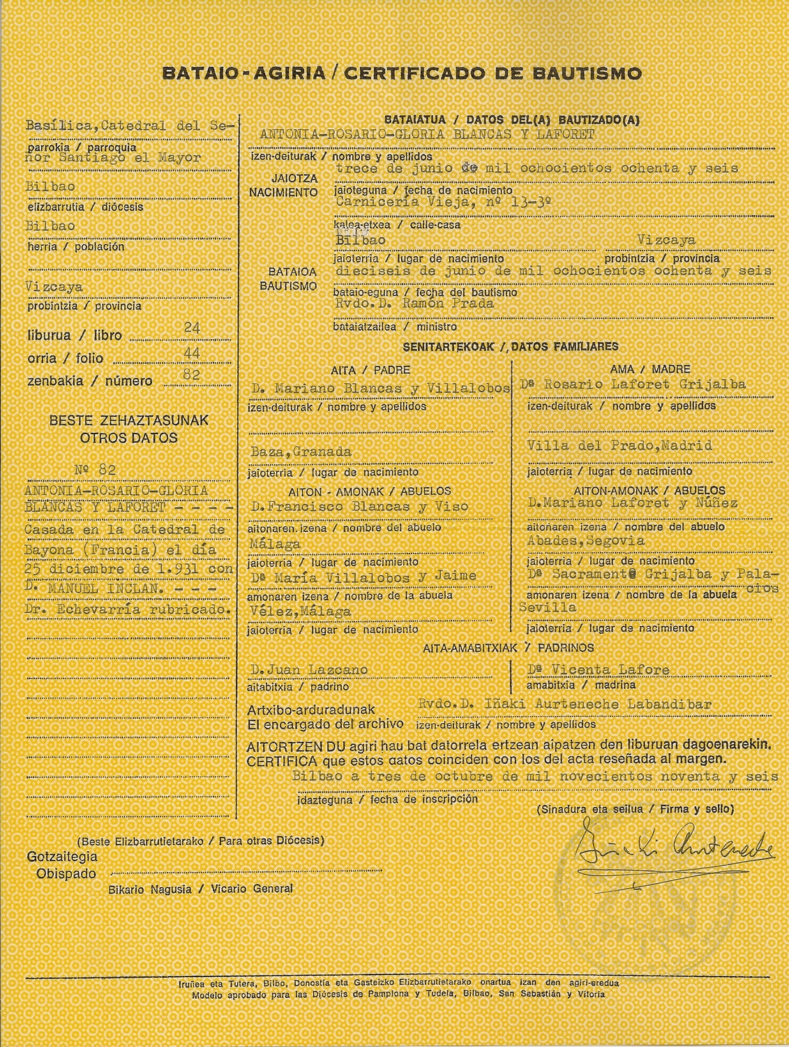 Père : BLANCAS LAFORET Julio ( 1878 - 1920 )