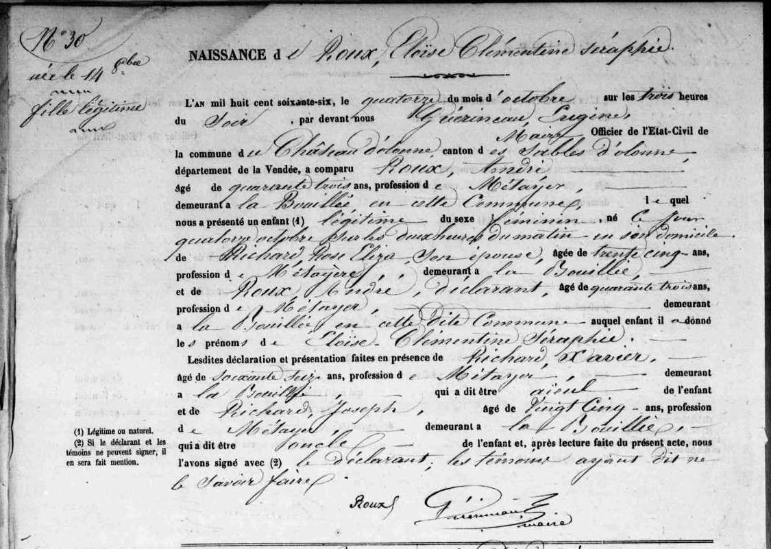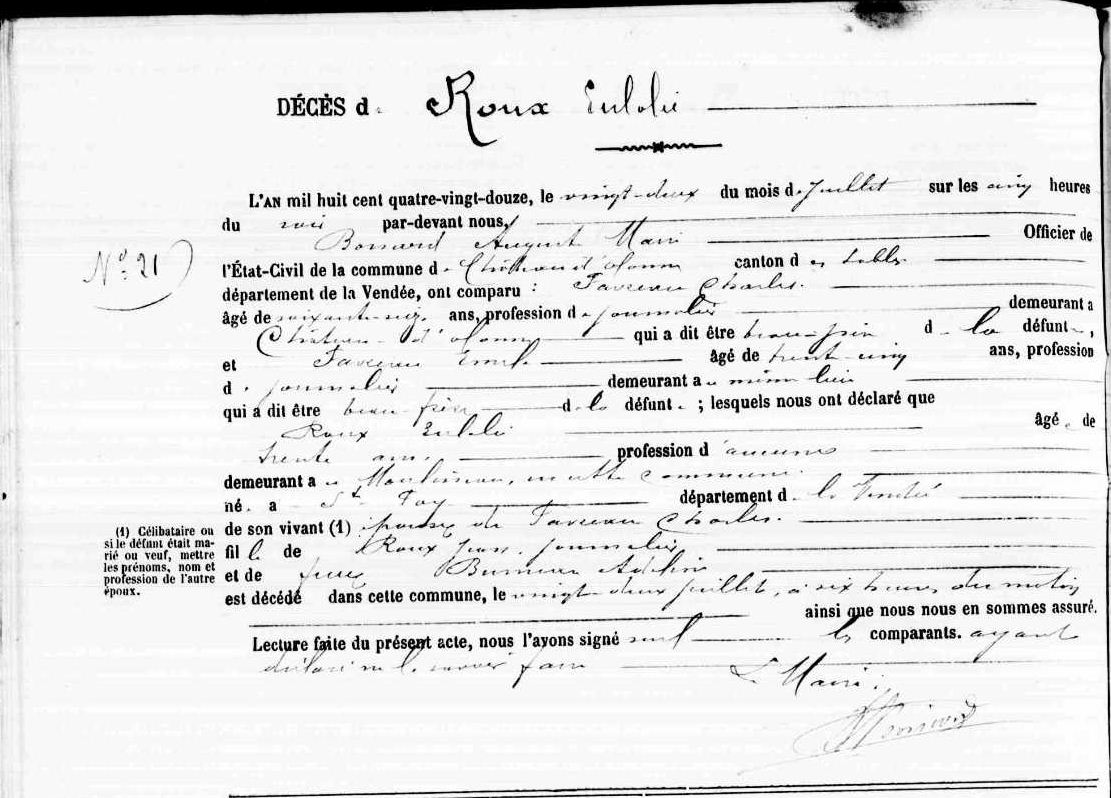 Naissance : 1862 Décès : 22 juillet 1892 à Château-d'Olonne 85180 Moulineau