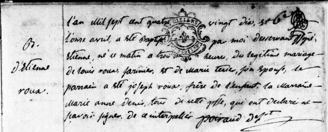 Baptême : 11 avril 1790 à Château-d'Olonne 85180