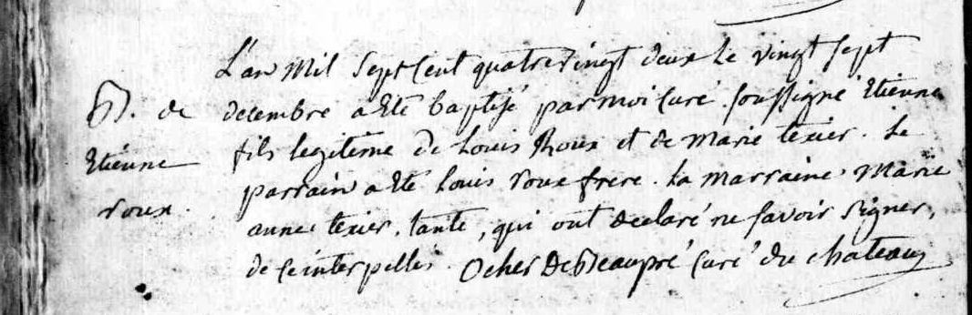 Baptême : 27 décembre 1782 à Château-d'Olonne 85180