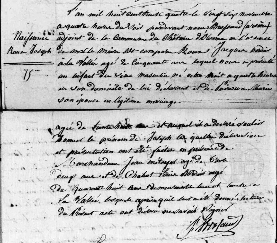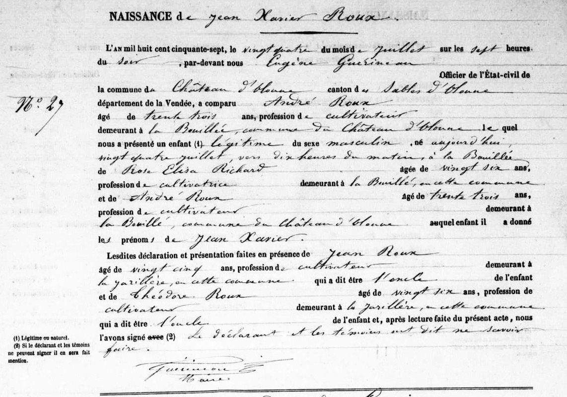 Baptême : 24 mars 1777 à Château-d'Olonne 85180