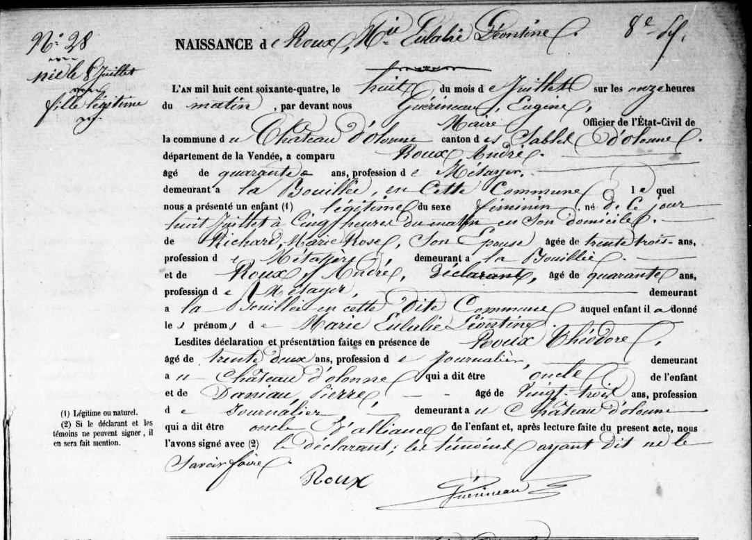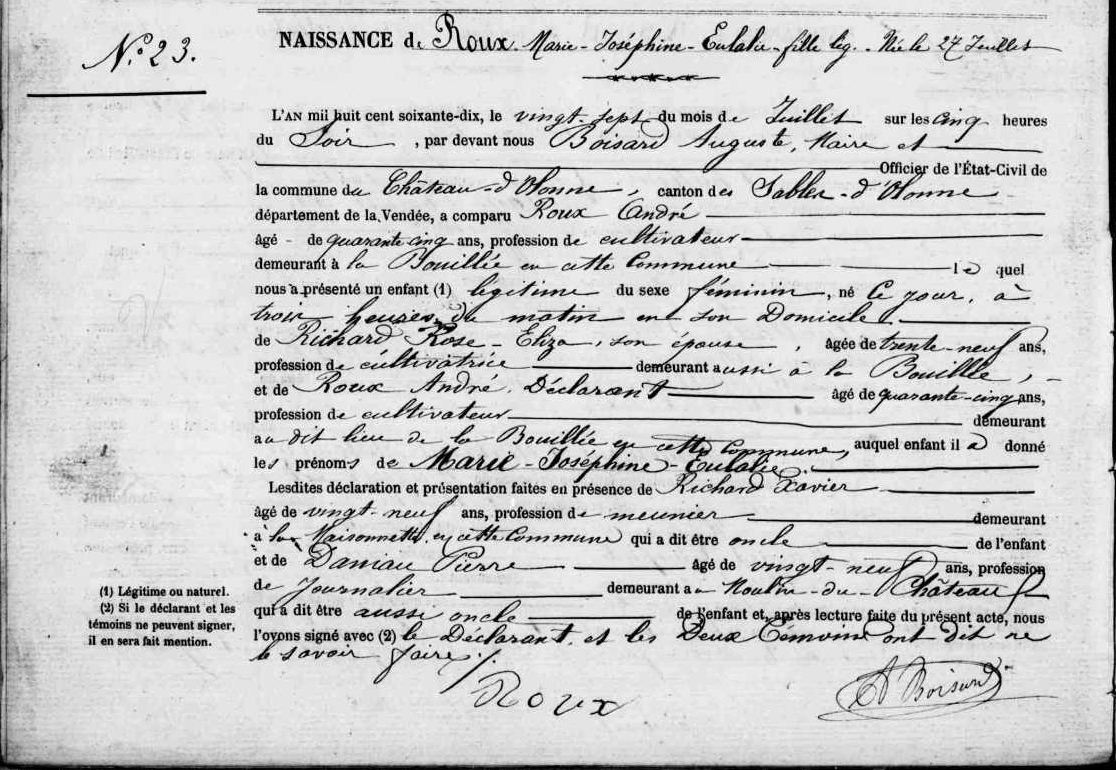 Naissance : 26 janvier 1875 à Château-d'Olonne 85180 au bourg