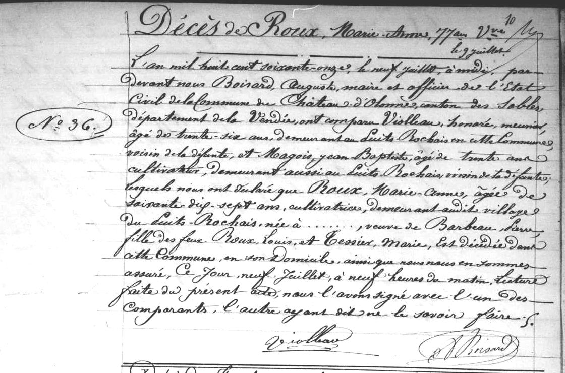 Décès : 18 mai 1786 à Château-d'Olonne 85180 Petit Paris