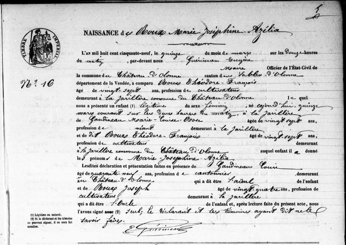 Mère : GAUDINEAU Marie Louise Rose ( 1833 - ? )