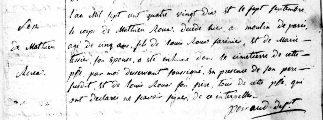 Inhumation : 7 septembre 1790 à Château-d'Olonne 85180 Moulin de Paris