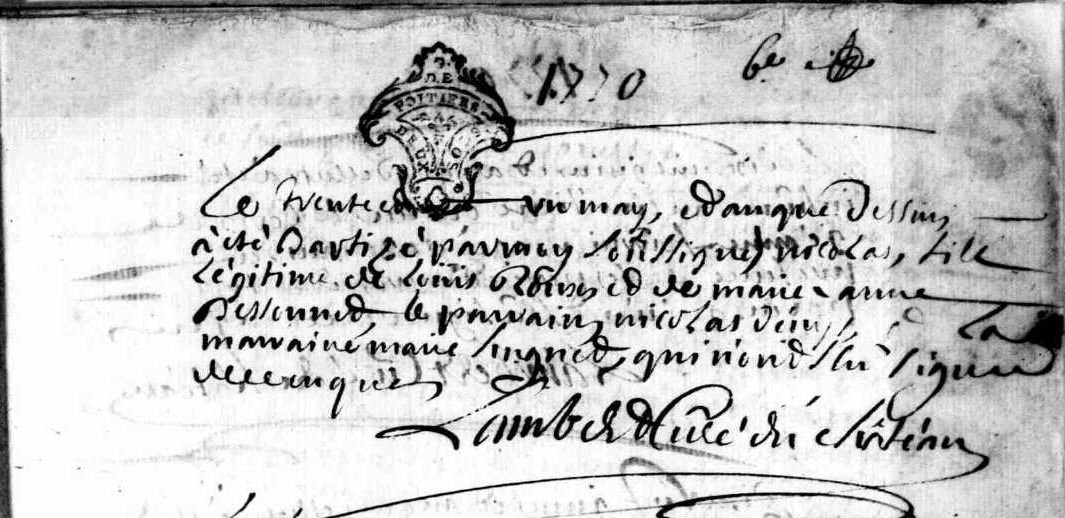 Naissance : 6 juin 1656 à Château-d'Olonne 85180