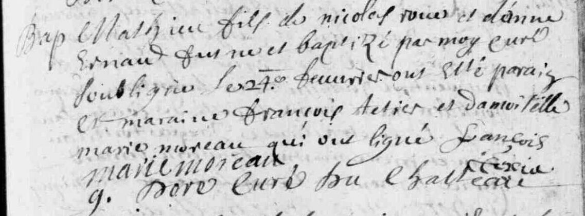 Baptême : 24 février 1693 à Château-d'Olonne 85180
