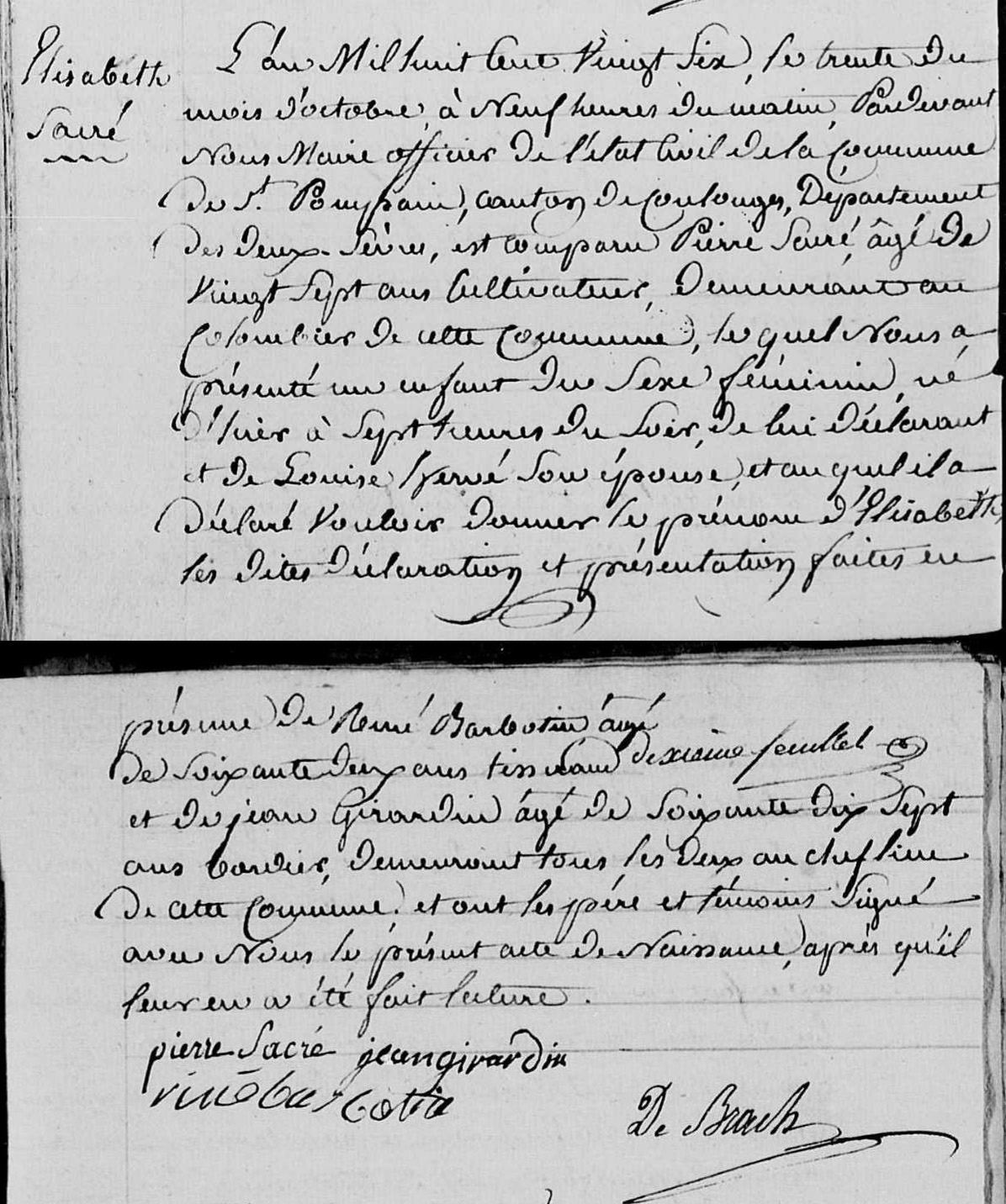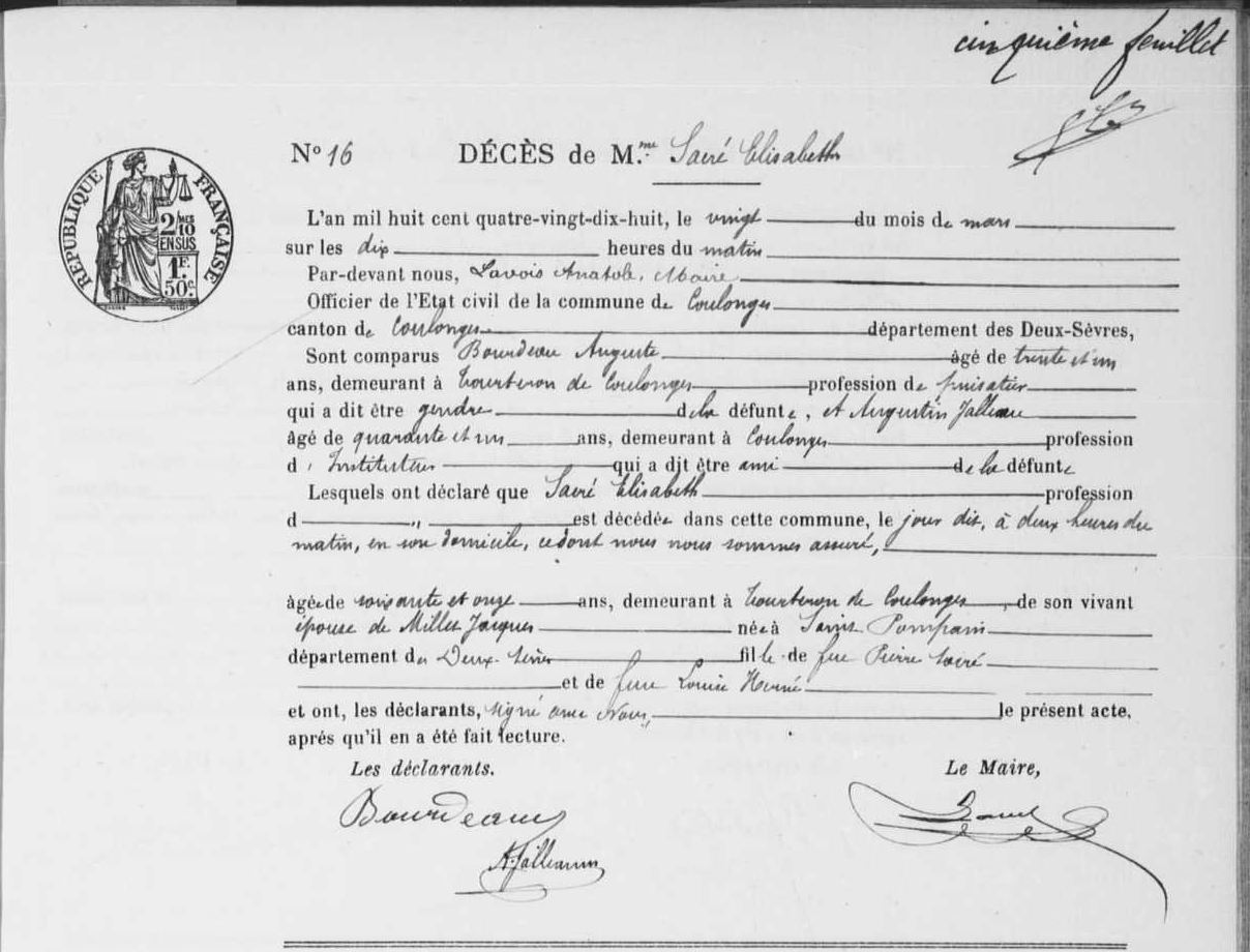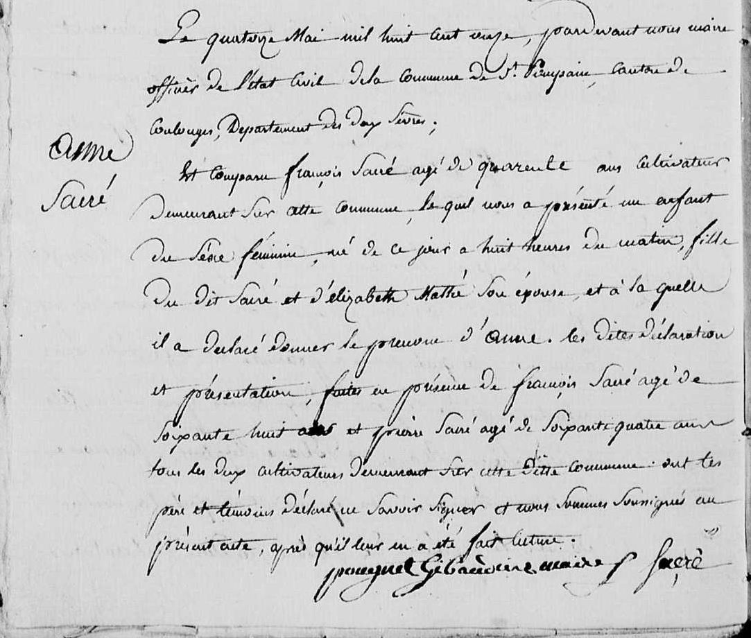 Naissance : 14 mai 1811 à Saint-Pompain 79160