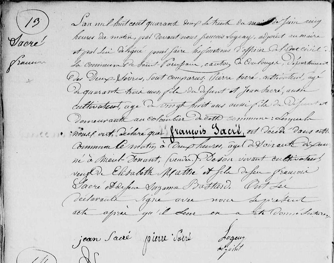 sieur Potier François (45 ans percepteur à Saint Pompain)