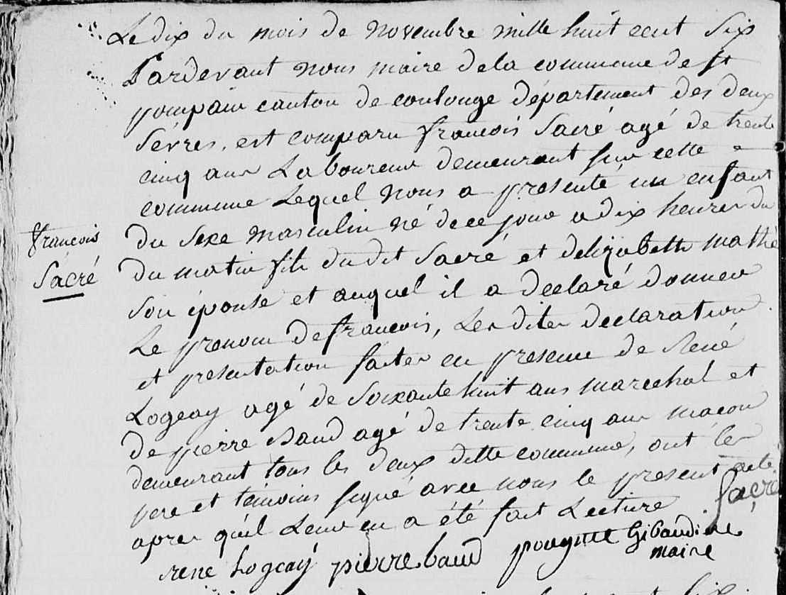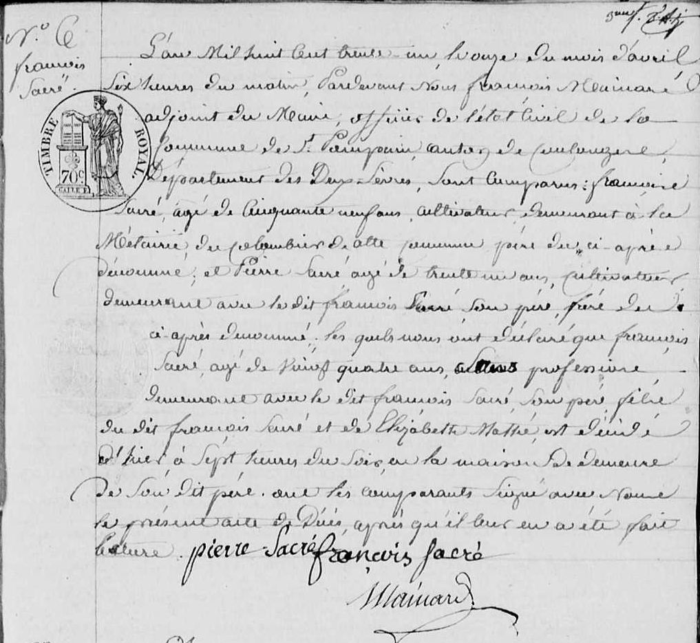 Naissance : 25 août 1816 à Saint-Pompain 79160