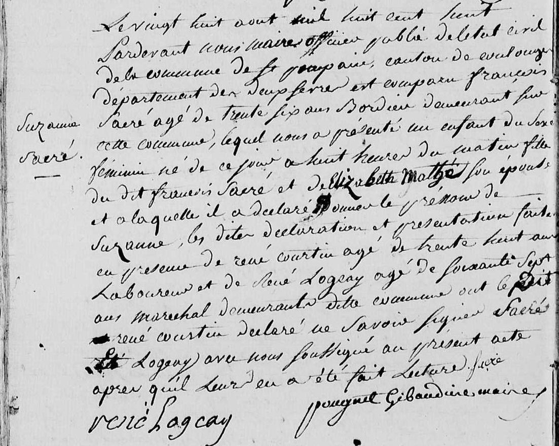 Naissance : 1830 Décès : 31 janvier 1832 à Saint-Pompain 79160 Le Colombier