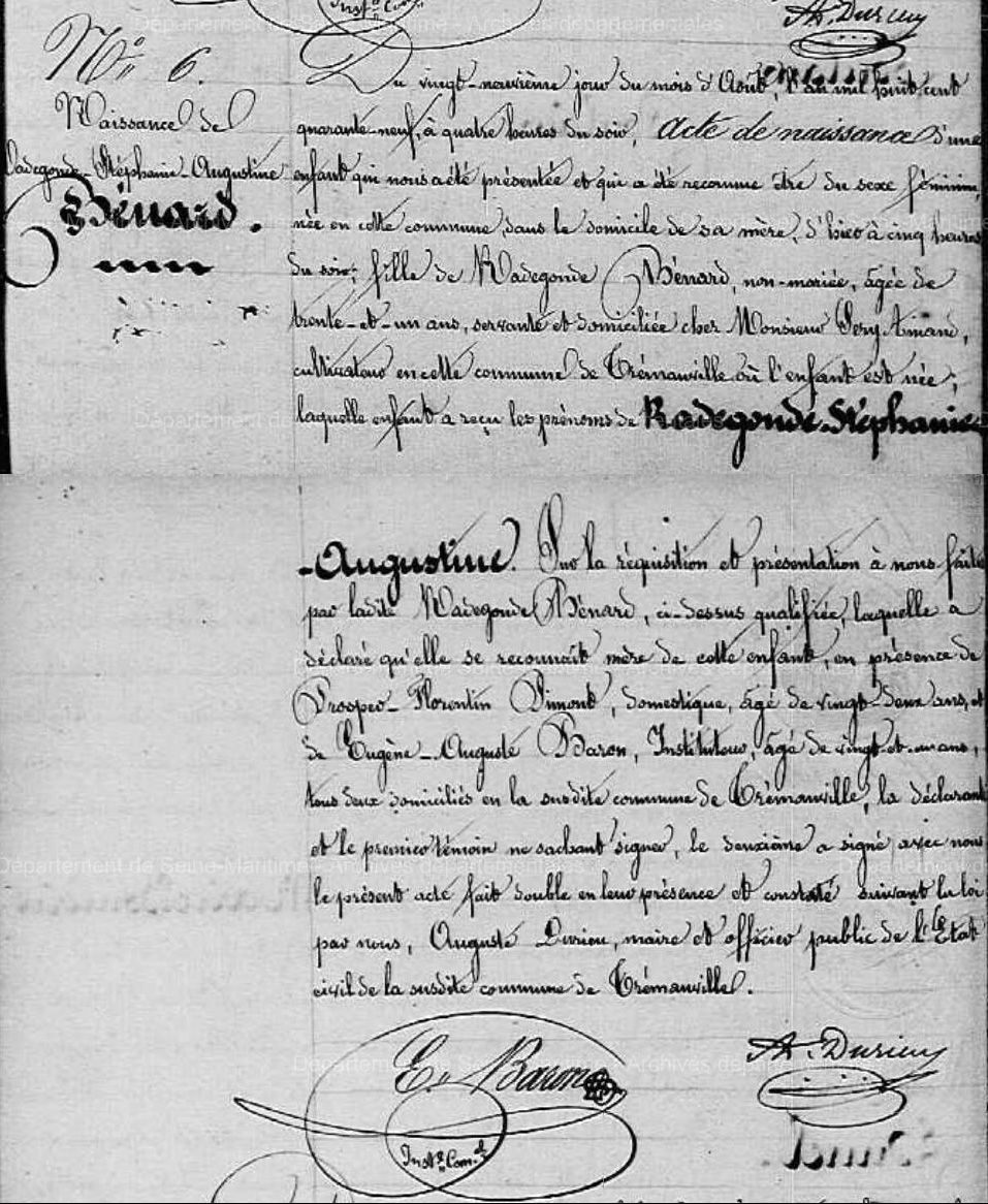 Enfant : SERY Radégonde Stéphanie Augustine ( 1849 - ? )