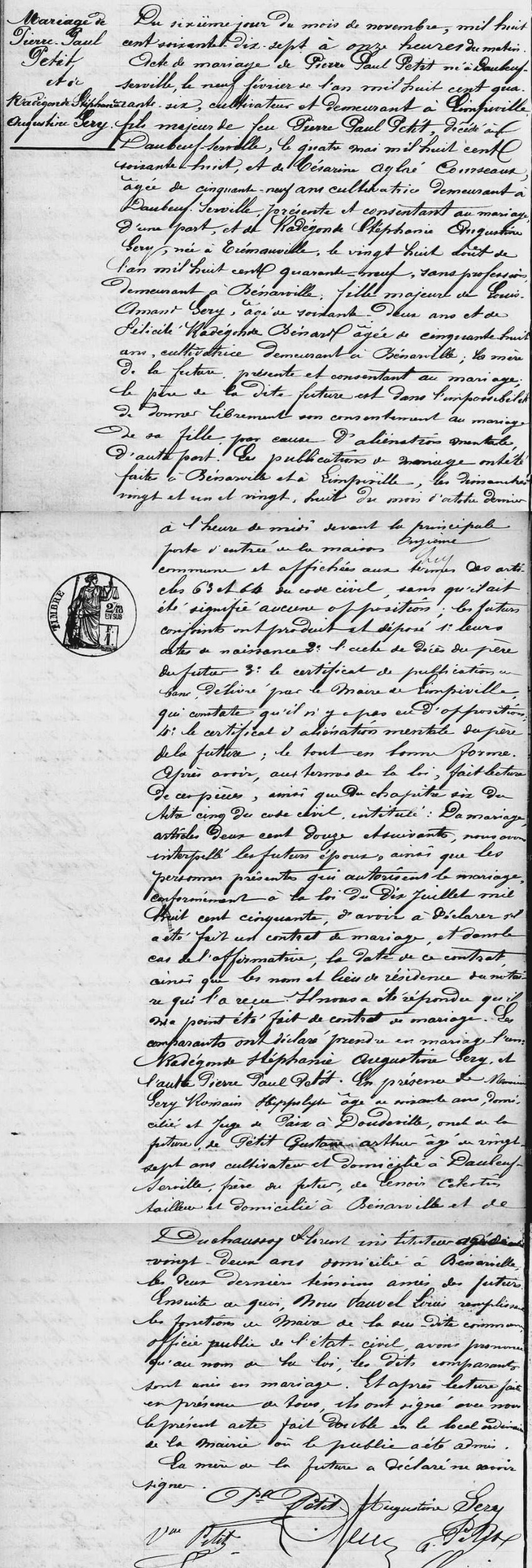 Mariage : 15 septembre 1808 à Étainhus 76430