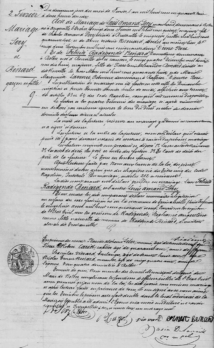 Union : BÉNARD Félicité Radégonde ( 1818 - 1886 )