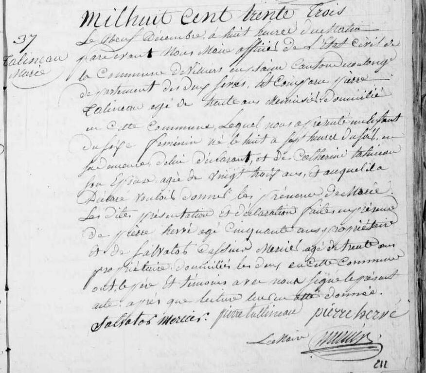 Mère : TALINEAU Catherine ( 1810 - ? )