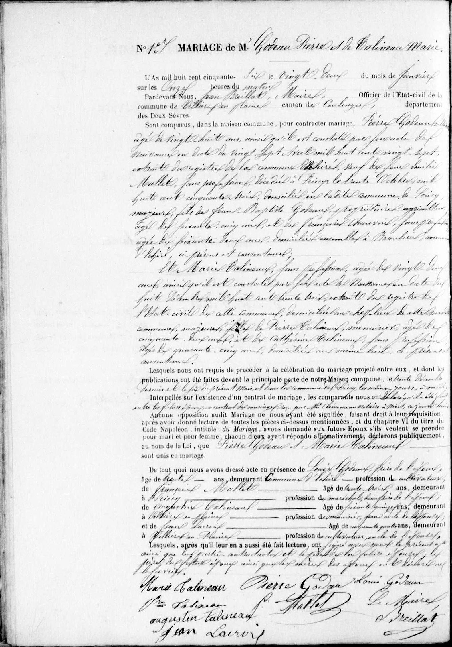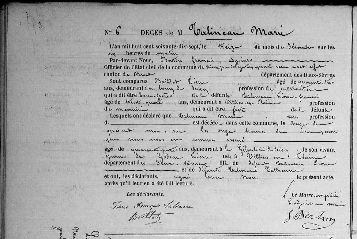 Naissance : 16 mars 1779 à Villiers-en-Plaine 79160 Décès : 26 avril 1847 à Villiers-en-Plaine 79160