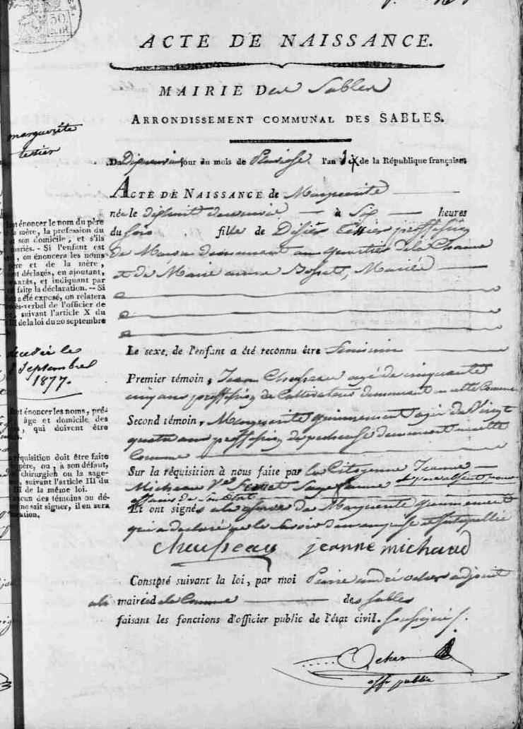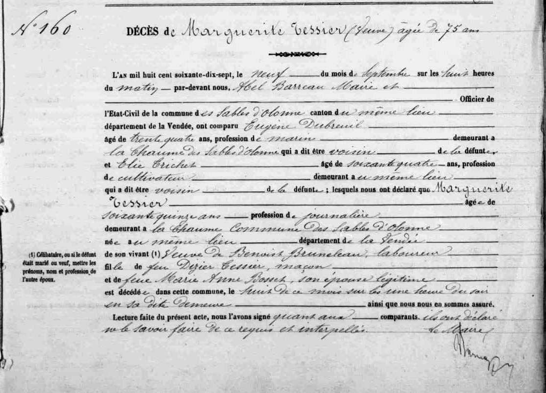 Décès : 24 août 1839 à Mauzé-Thouarsais 79100