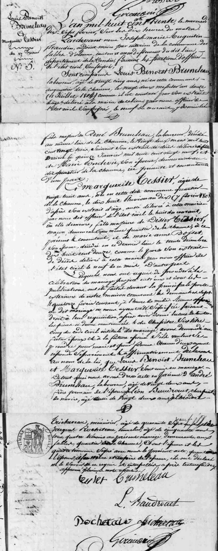 Union : BRUNELEAU Louis Benoist ( 1804 - 1855 )
