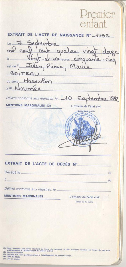 Père : BOITEAU Zacharie Marie François Xavier ( 1962 - ? )