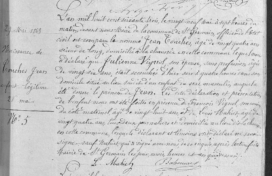 Naissance : 15 octobre 1843 à Couziers 37500 Décès : 20 octobre 1843 à Couziers 37500