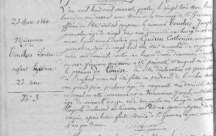 Naissance : 23 mars 1864 à Saint-Germain 86310