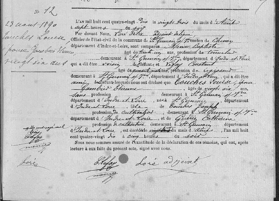 Décès : 23 août 1890 à Saint-Germain-sur-Vienne 37500