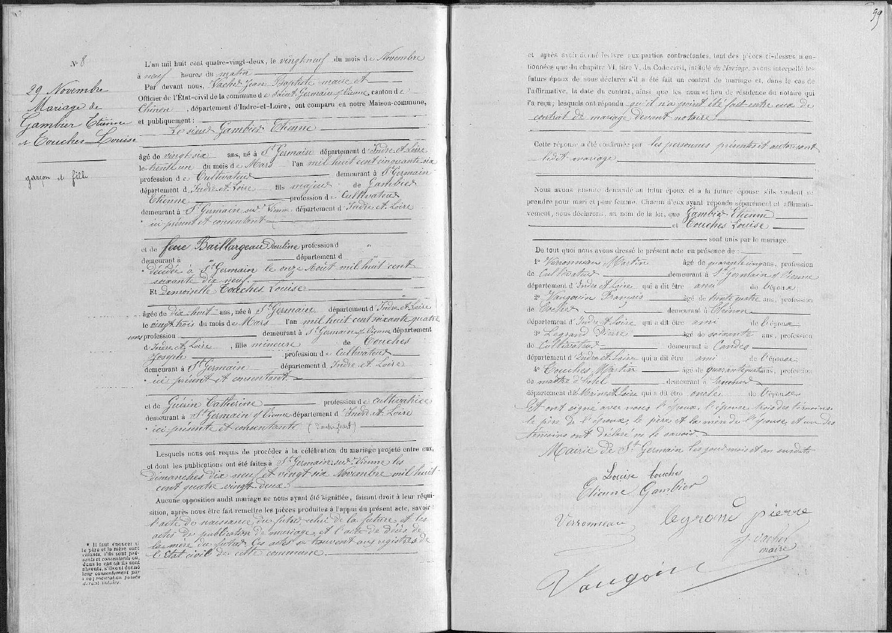 Mariage : 19 novembre 1835 à Saint-Germain-sur-Vienne 37500