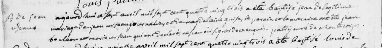 Baptême : 7 avril 1783 à Chantecorps 79340