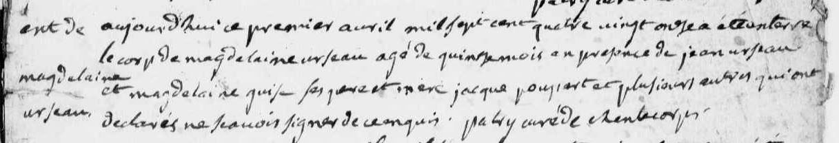 Inhumation : 1er avril 1791 à Chantecorps 79340