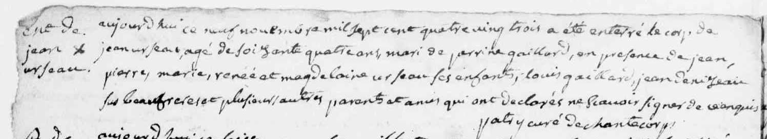 Naissance : 1719 Inhumation : 9 novembre 1783 à Chantecorps 79340