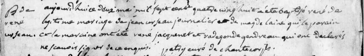 Baptême : 2 mai 1788 à Chantecorps 79340
