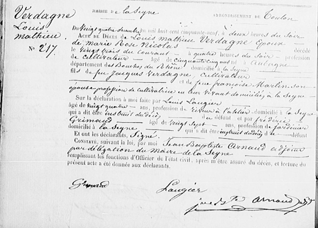 Naissance : 20 septembre 1804 à Aubagne 13400 Décès : 23 décembre 1859 à La Seyne-sur-Mer 83500