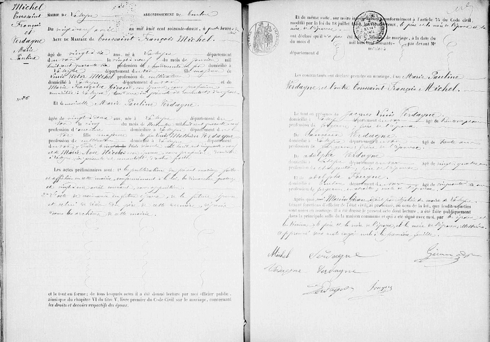 Mariage : 29 avril 1872 à La Seyne-sur-Mer 83500