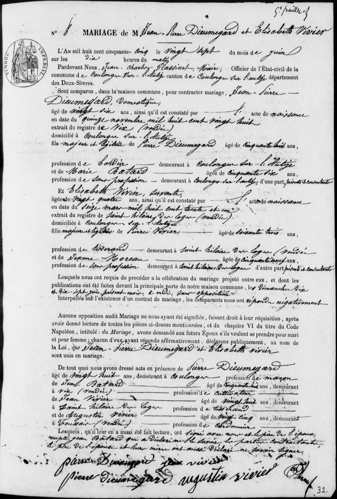 Union : DIEUMEGARD Jean-Pierre ( 1829 - ? )