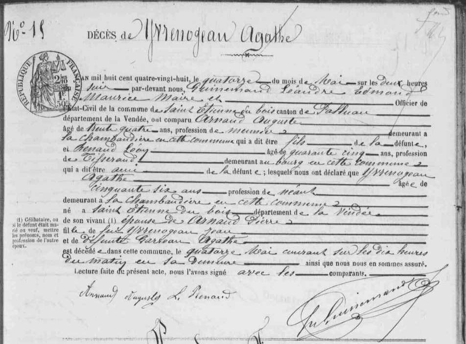 Enfant : YVRENOGEAU Agathe ( ? - 1888 )