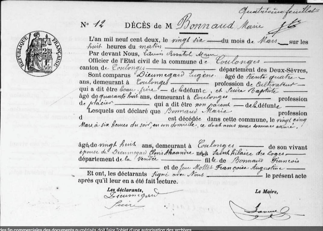 Enfant : BONNAUD Marie ( 1874 - 1902 )