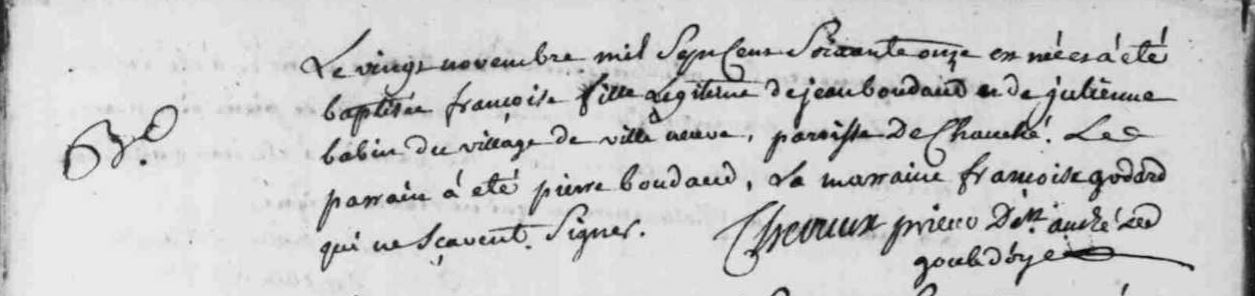 Père : BOUDAUD Nicolas ( 1655 - 1691 )