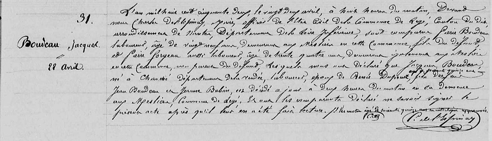 Enfants : BOUDEAU Jean-Pierre ( 1805 - ? )