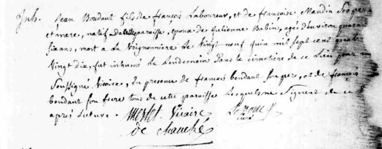 Naissance : 1717 à Chauché 85140 Villeneuve Décès : 9 mai 1783 à Chauché 85140 villeneuve