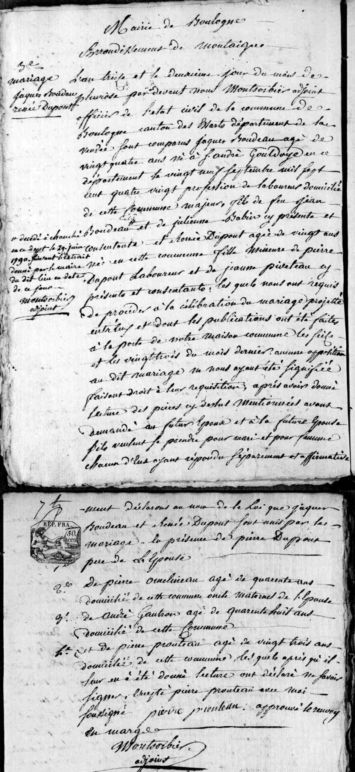 Naissance : 29 mars 1760 à Saint-André-Goule-d'Oie 85250 villeneuve Décès : 10 mai 1841 à Dompierre-sur-Yon 85170