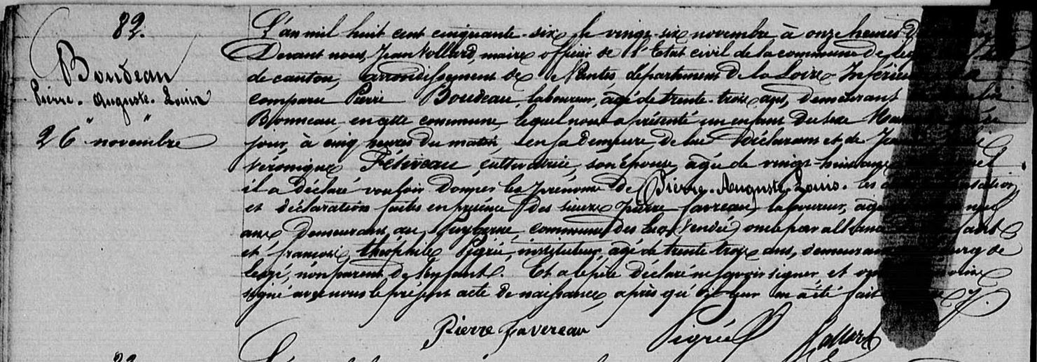 Naissance : 26 novembre 1856 à Legé 44650 Moulin Bonneau