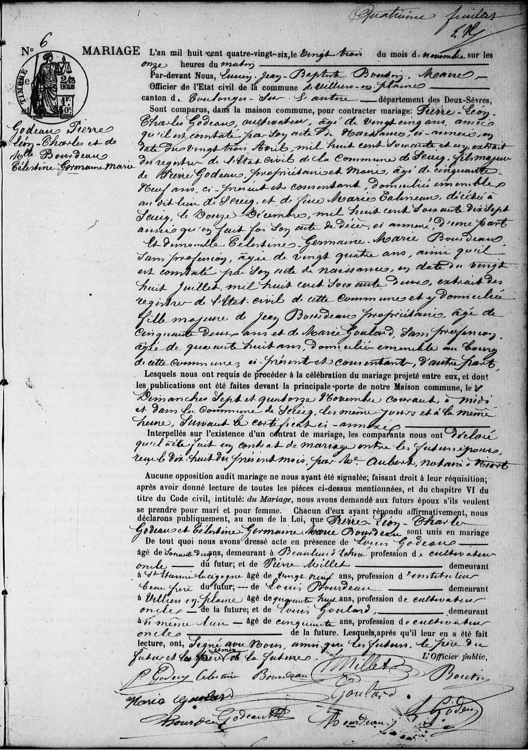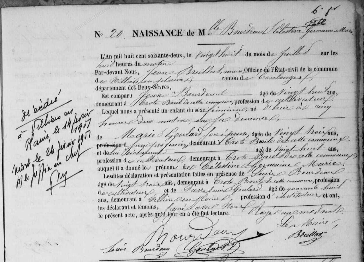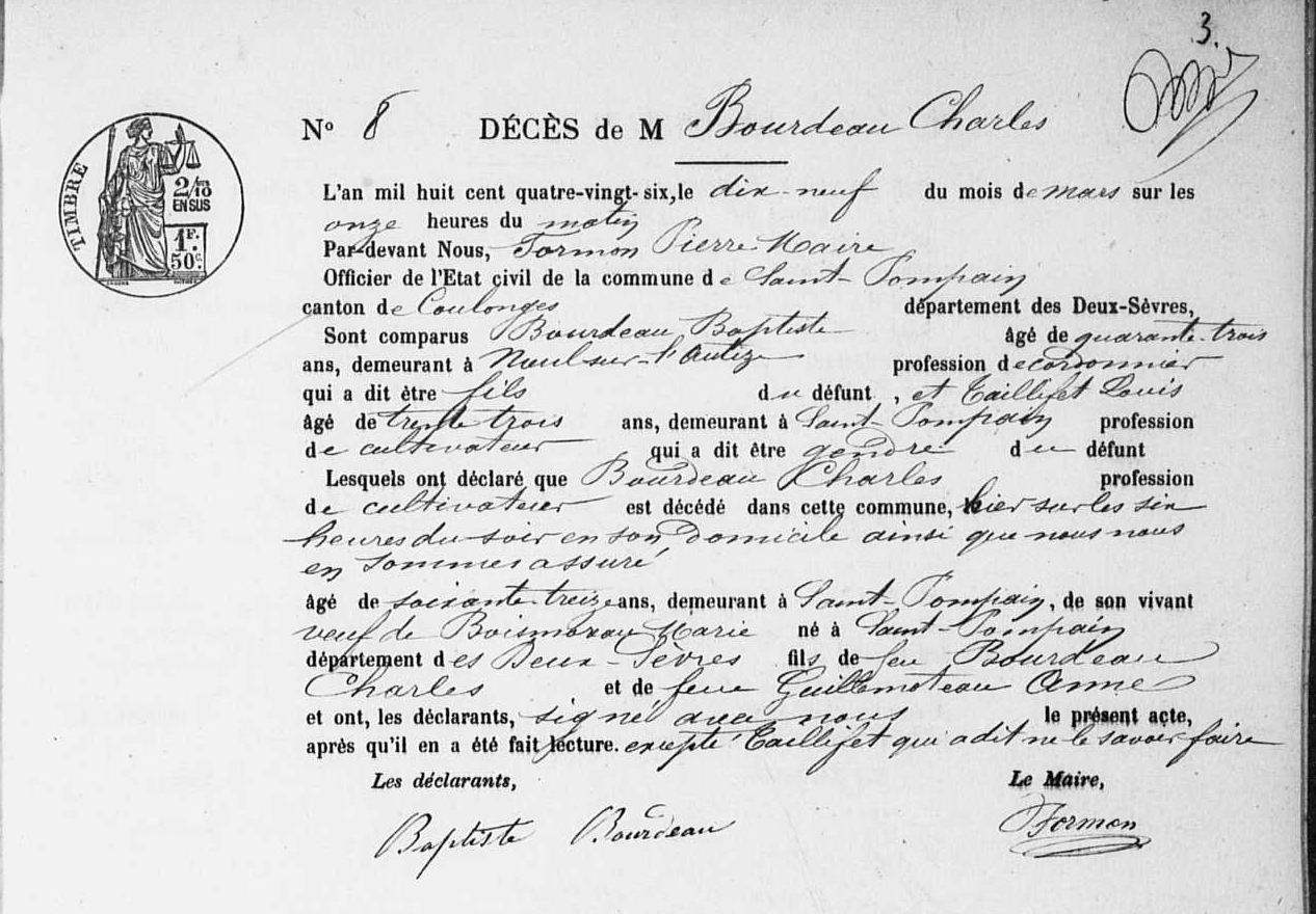 Naissance : 16 juin 1843 à Saint-Pompain 79160