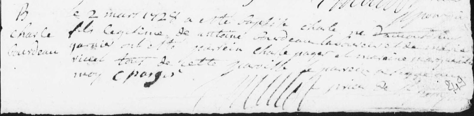 Baptême : 2 mars 1728 à Saint-Pompain 79160 Beauvais