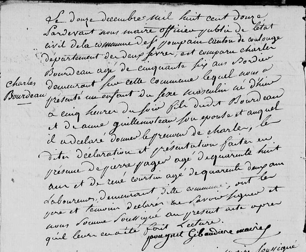 Enfants : BOURDEAU Charles ( 1812 - 1886 )